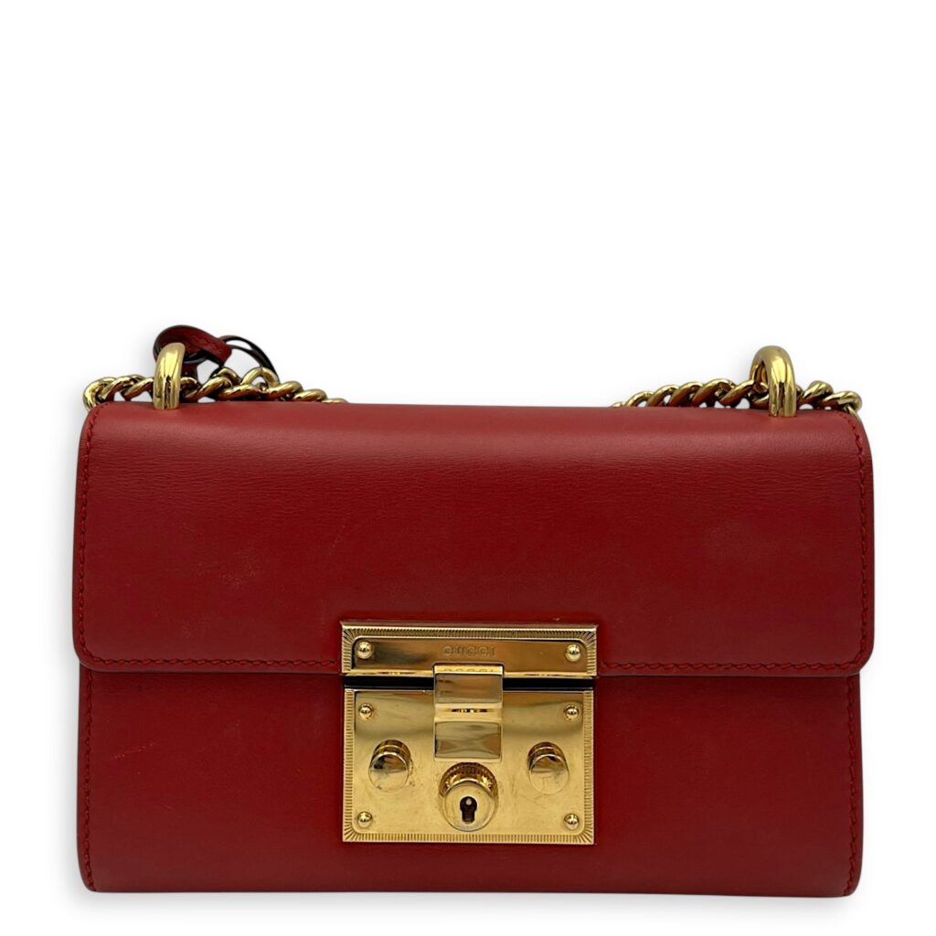 Padlock Shoulder Bag Red in Calfskin, Gold hardware
