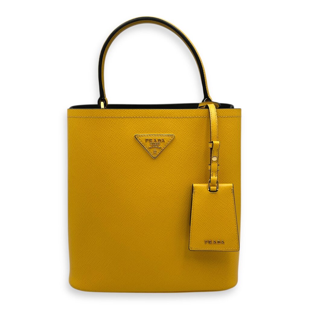 Panier Yellow Bucket Bag in Saffiano Leather, Gold hardware