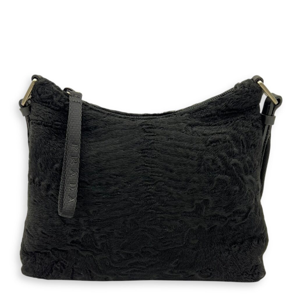 Persian Lamb Black Shoulder Bag in, Silver hardware