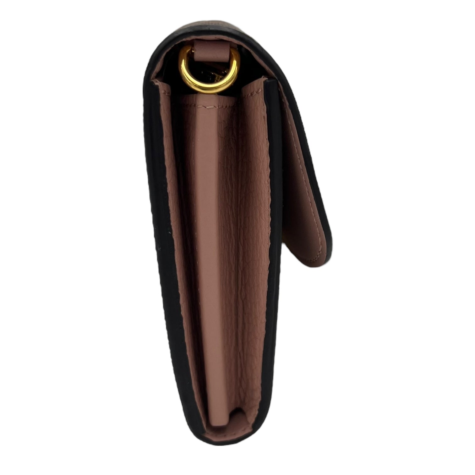 Croisette Wallet On Chain Damier Ebene in Coated Canvas, Gold hardware