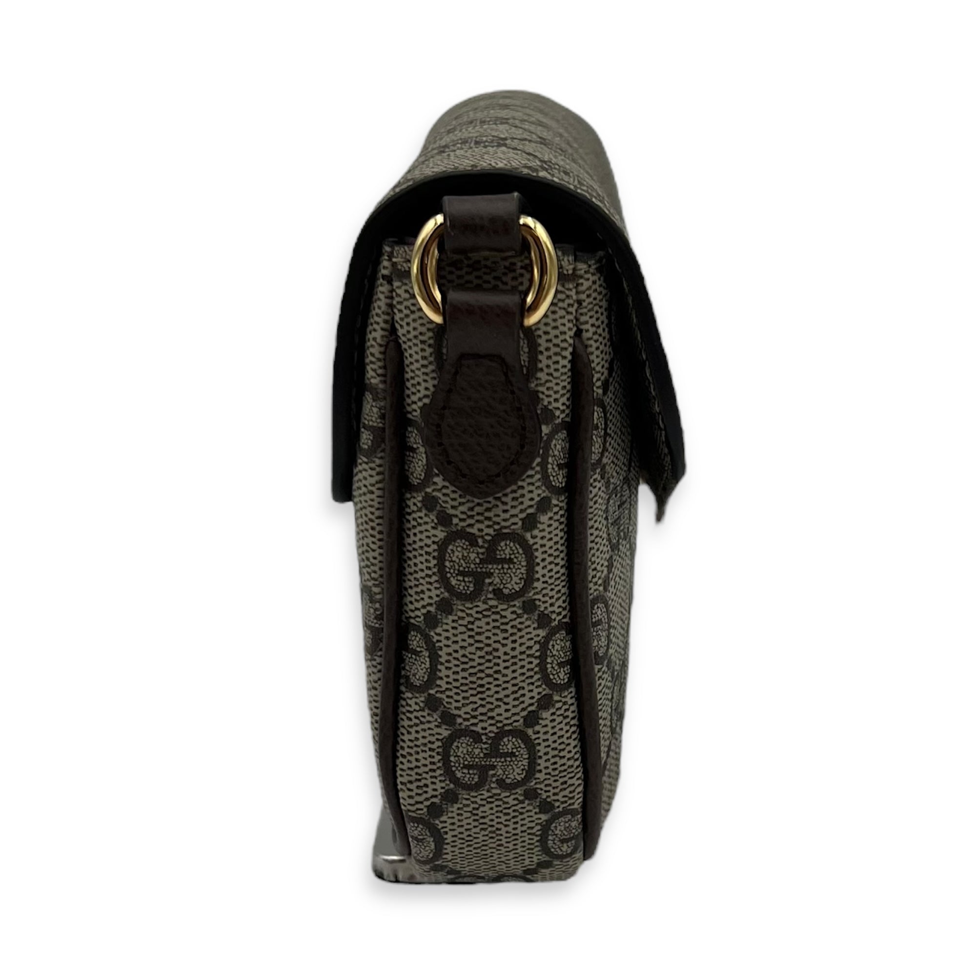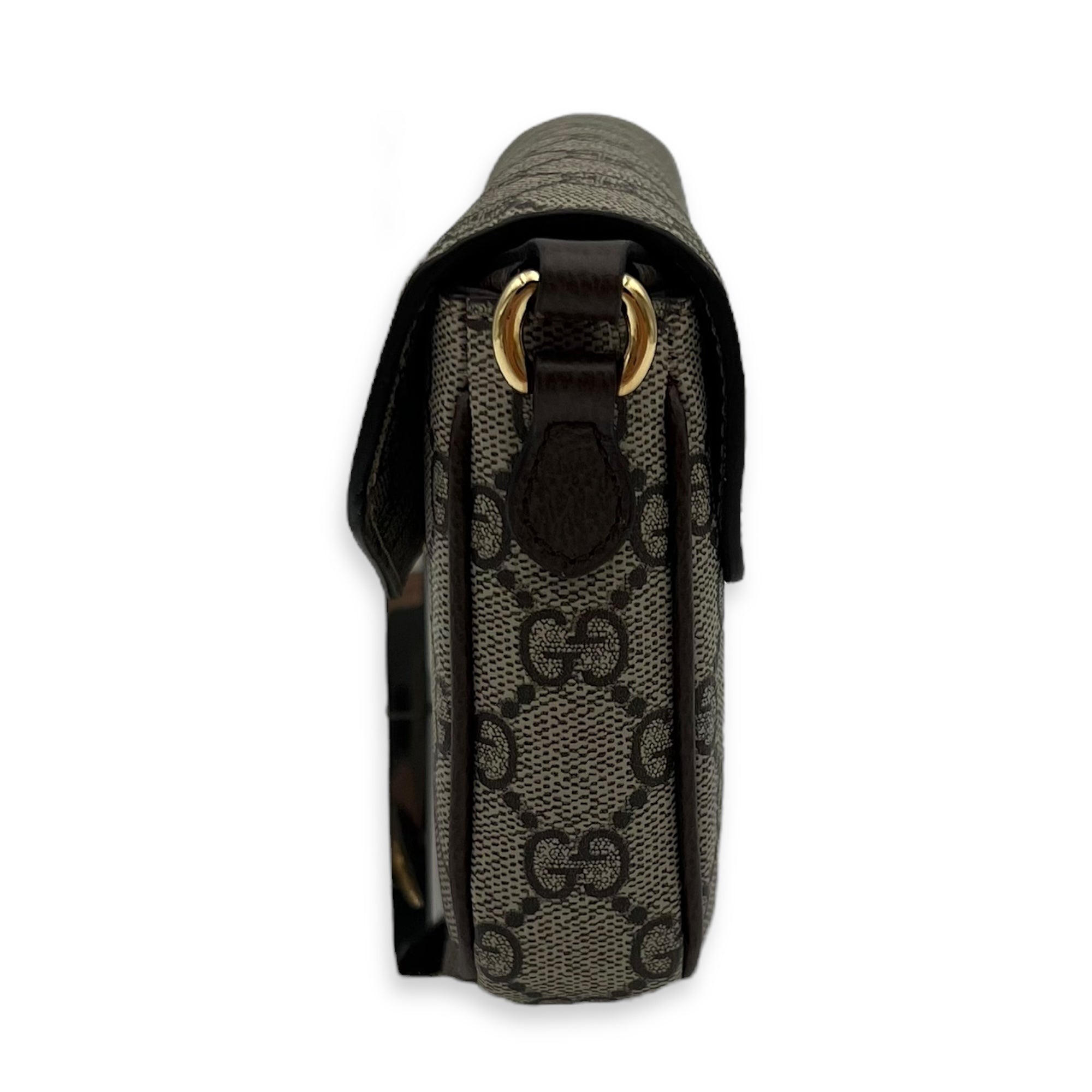 Ophidia Brown Crossbody Bag in Monogram Coated Canvas, Gold hardware