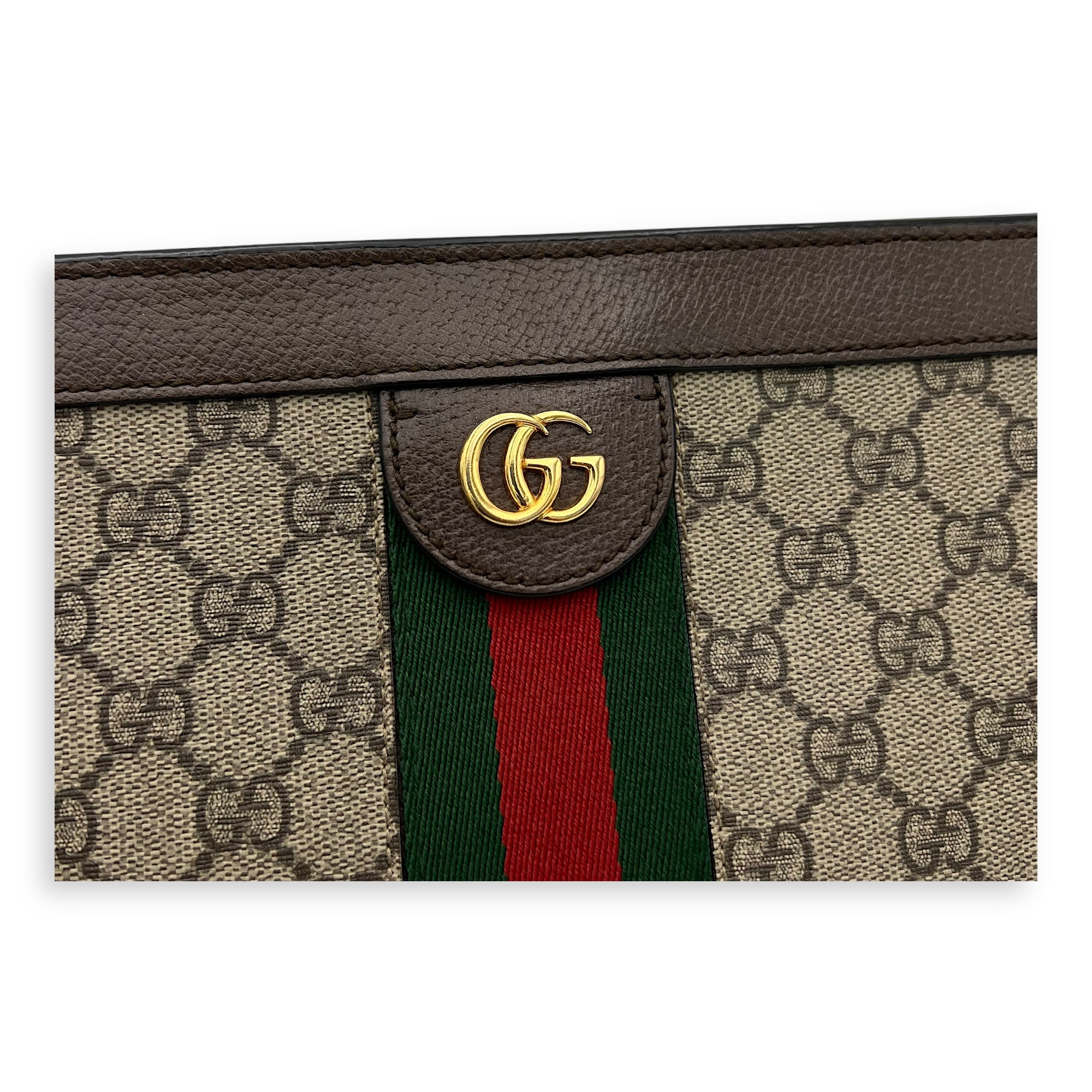 Ophidia Crossbody Bag Brown in Coated Canvas, Gold hardware