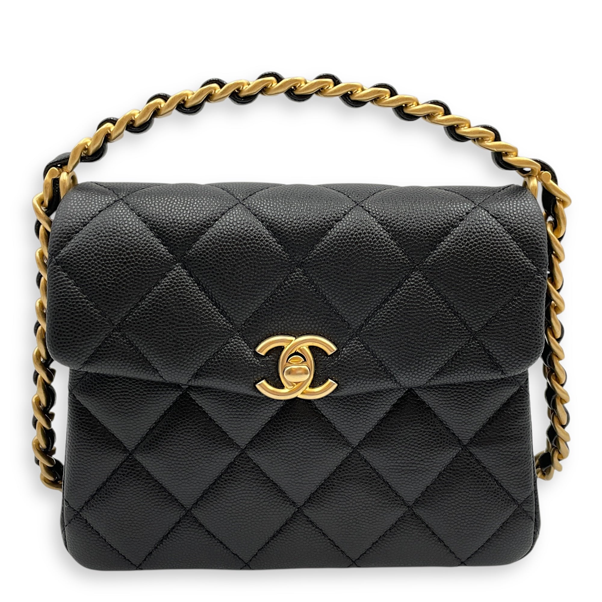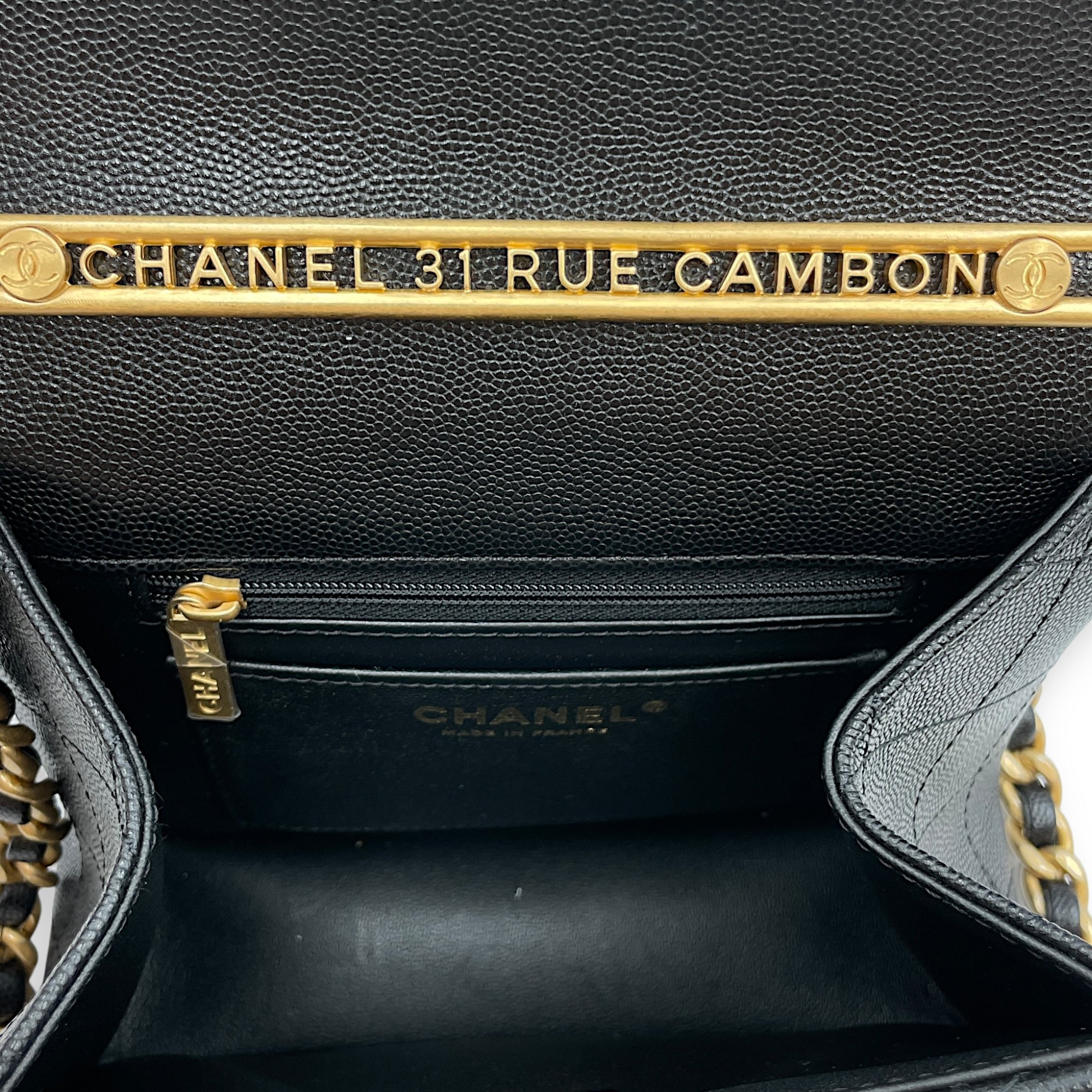 Be the first to review “Quilted Rue Cambon 31 Mini Black Top Handle Bag in Caviar Leather, Brushed Gold hardware”