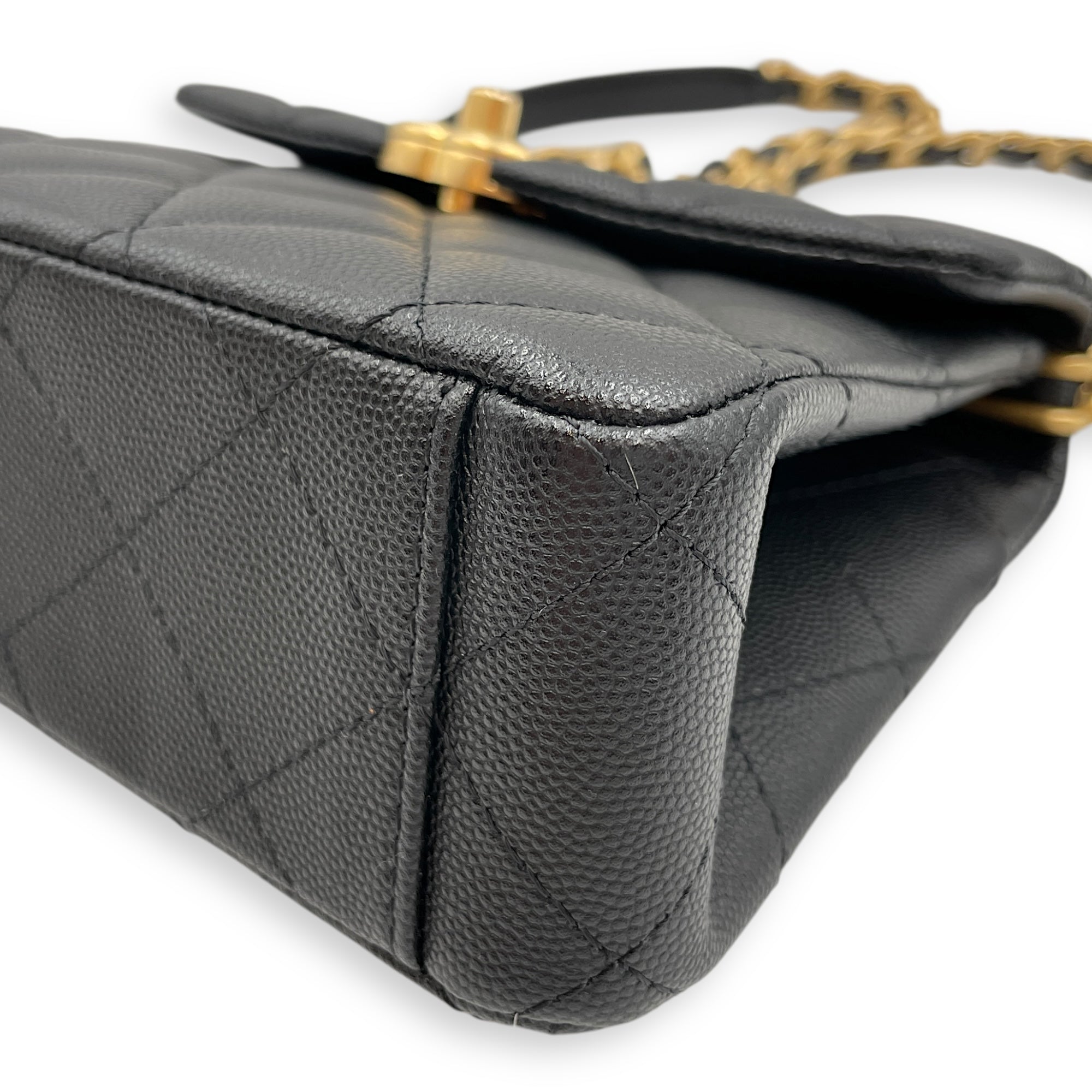 Quilted Rue Cambon 31 Mini Black Top Handle Bag in Caviar Leather, Brushed Gold hardware