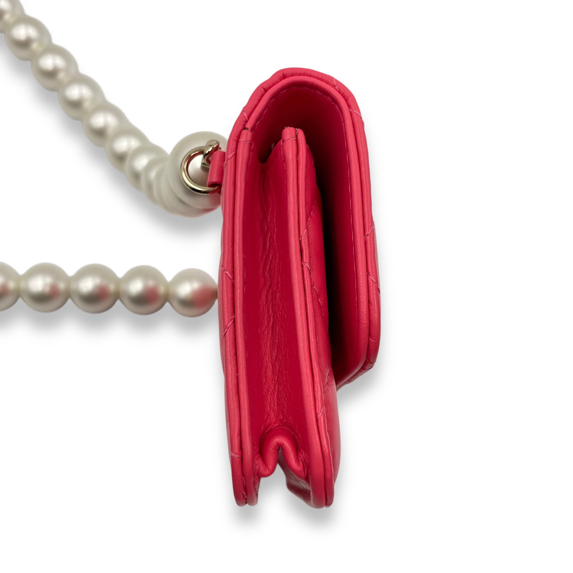 Quilted Vanity With Pearl Strap Mini Pink Crossbody Bag in Lambskin, Pearls, Gold hardware