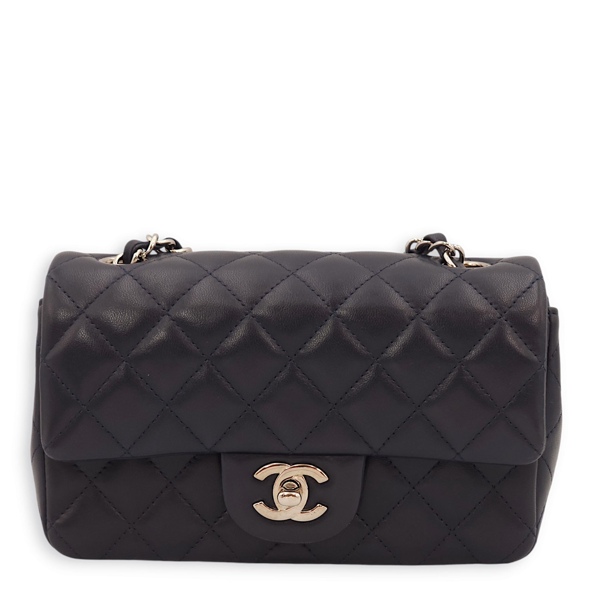 Rectangle Mini Navy Blue Crossbody Bag in Lambskin, Palladium hardware