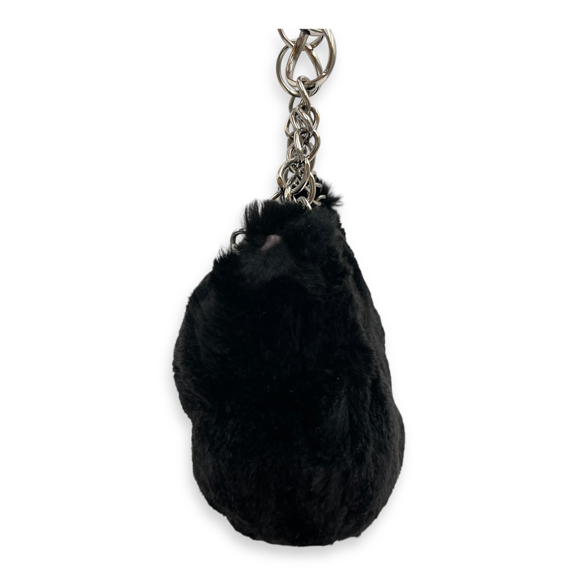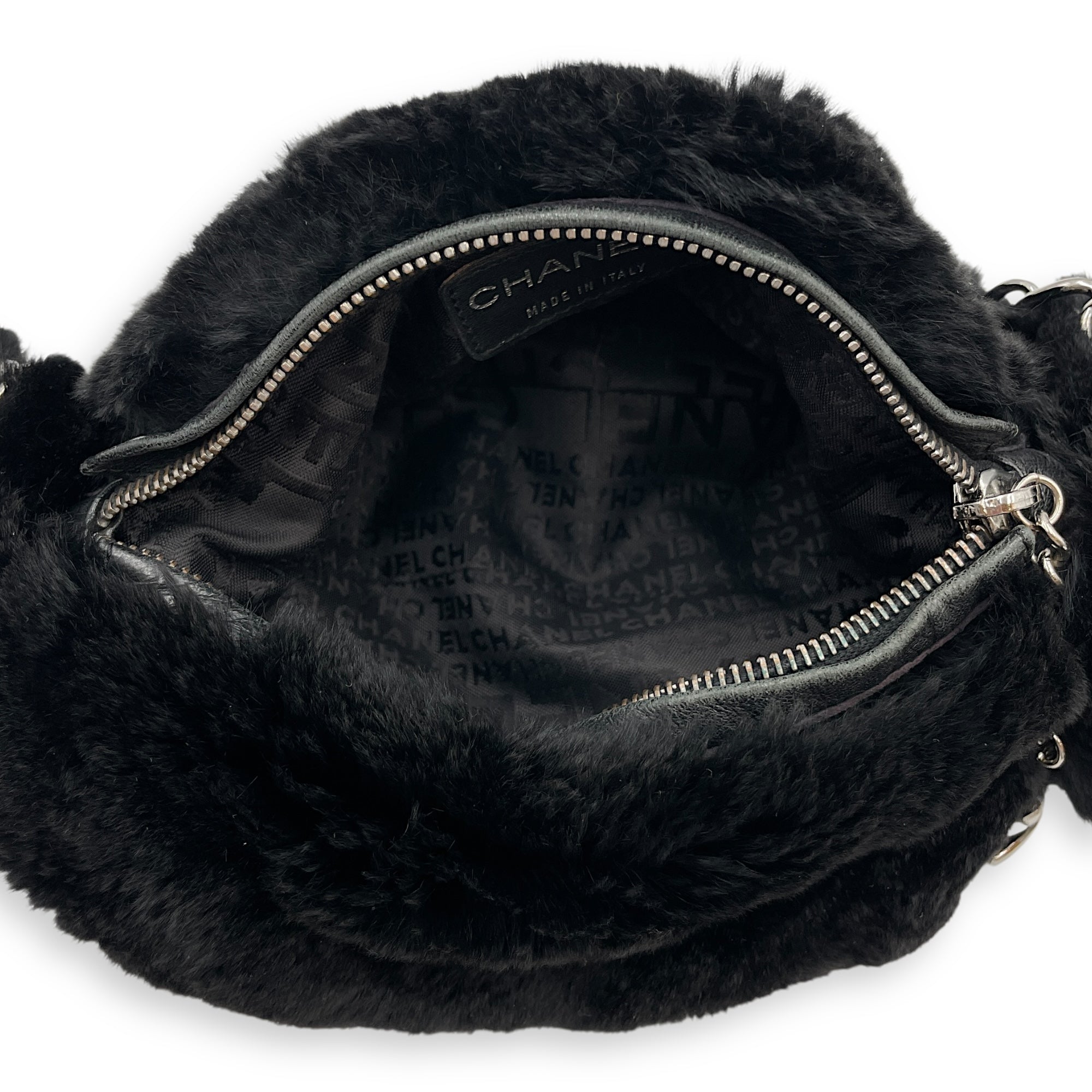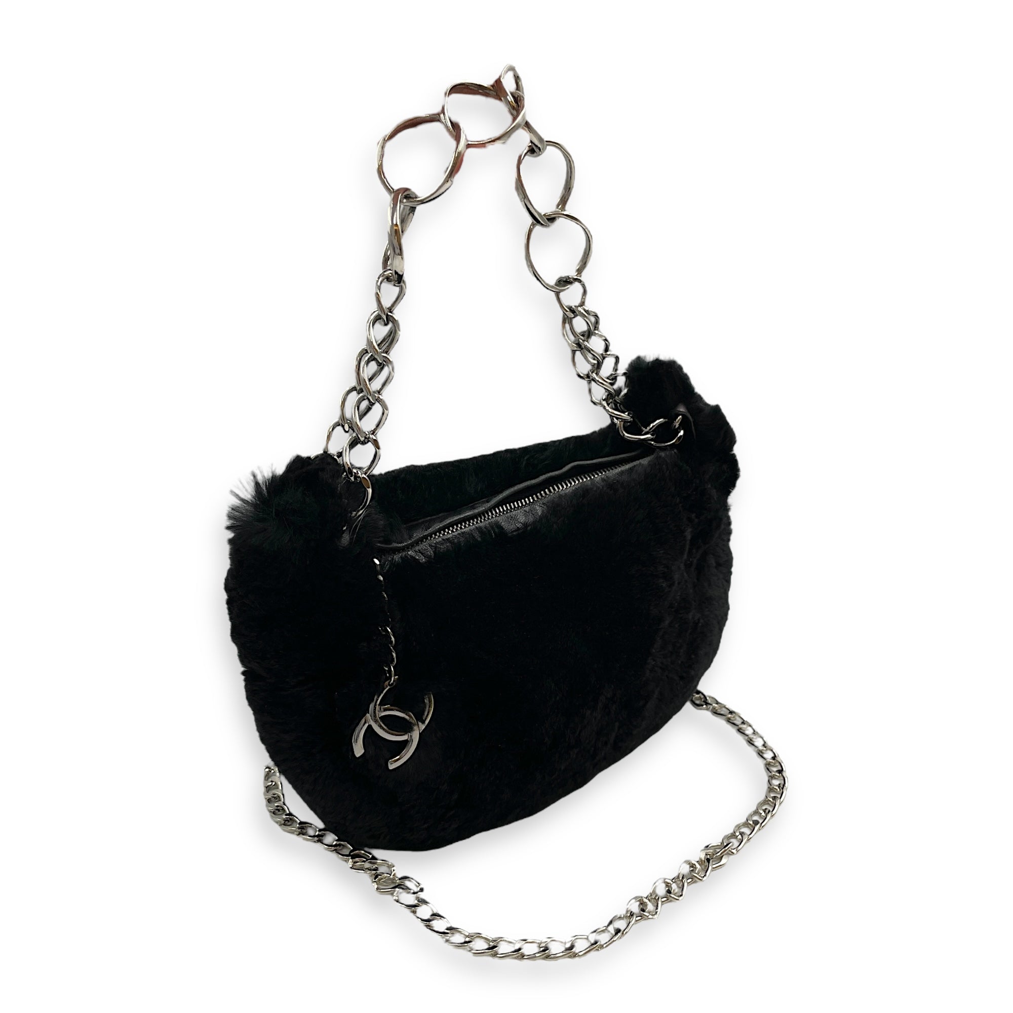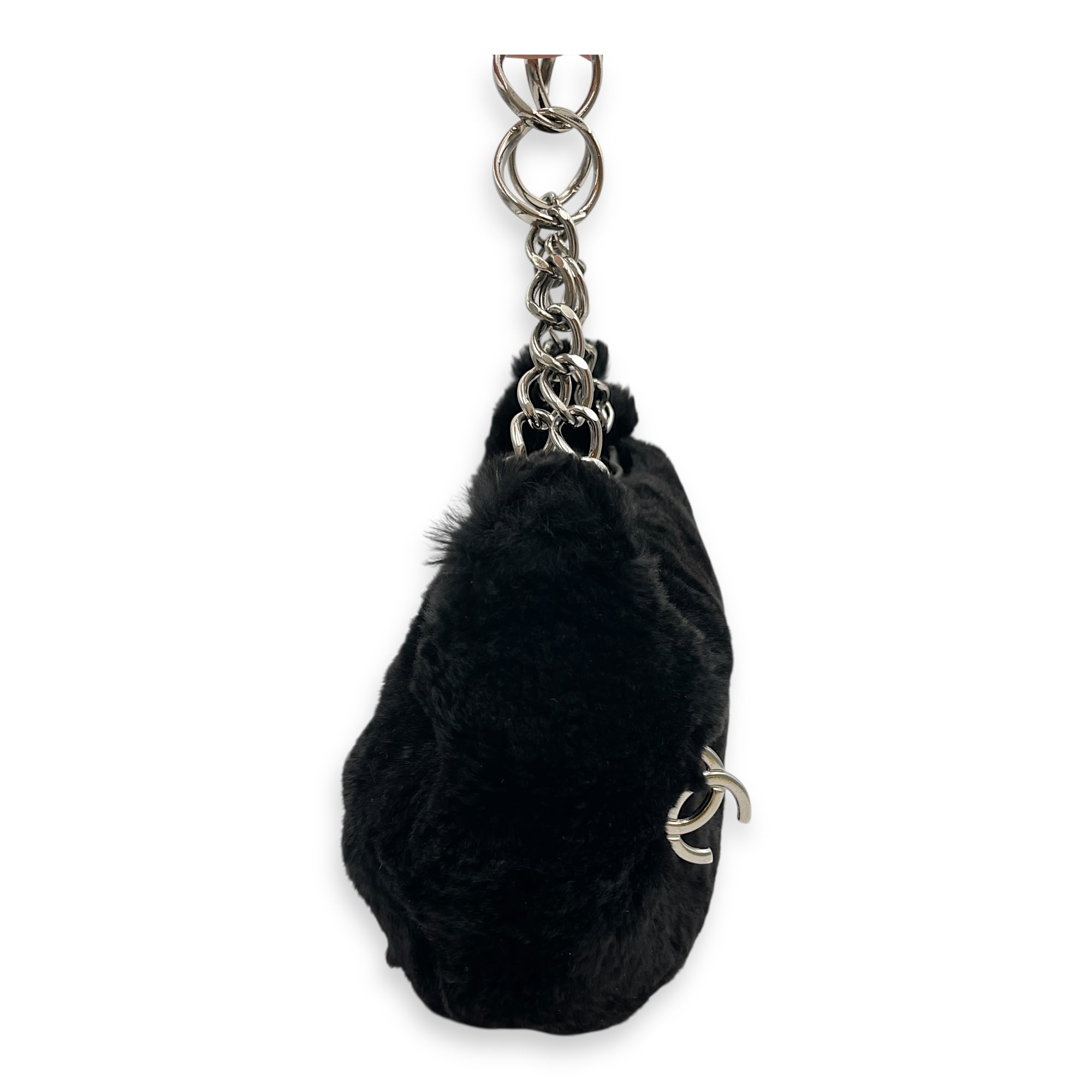 Vintage Black Shoulder Bag in Faux Fur, Silver hardware