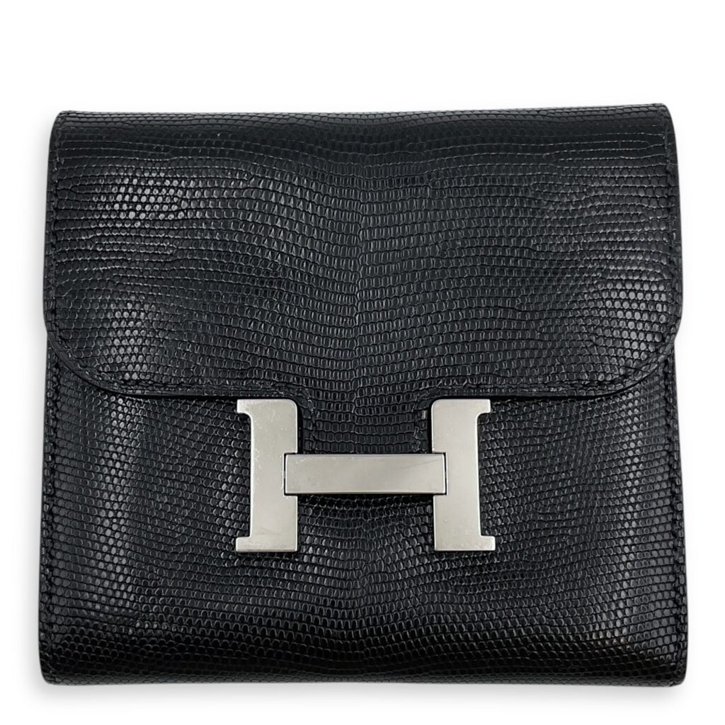 Constance Compact Black Wallet in Lizard Varanus Niloticus, Palladium hardware