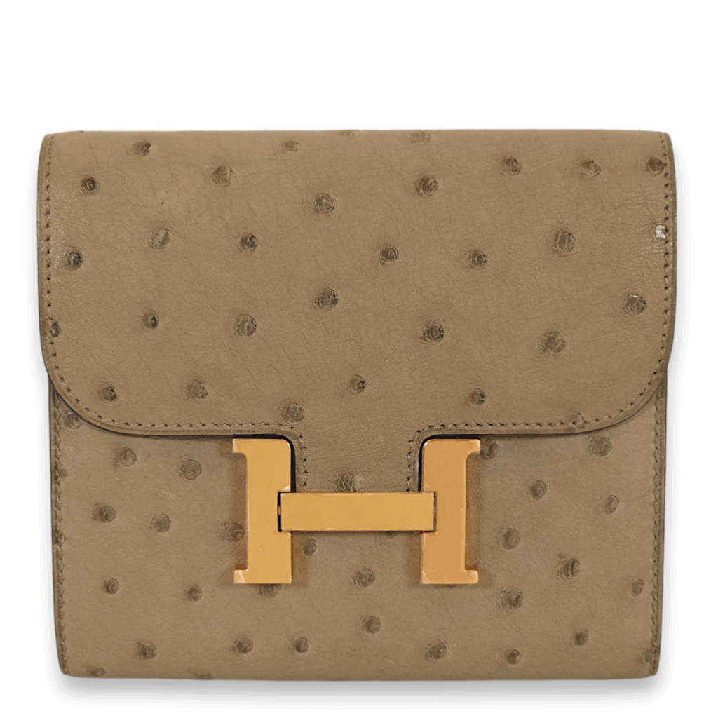 Constance Asphalt Gris Asphalt Wallet in Ostrich, Rose Gold hardware