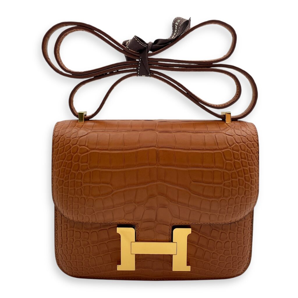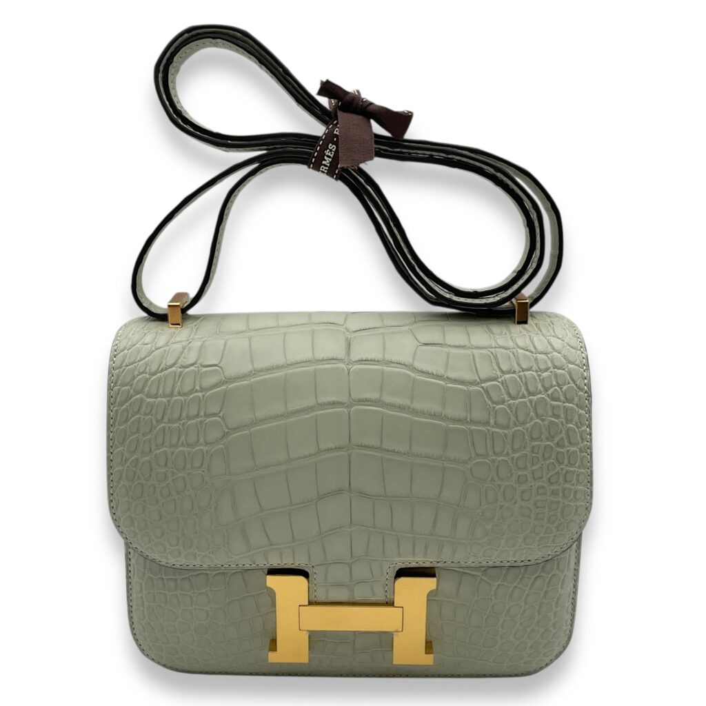 Constance Mirror 18 Gold in Matte Alligator, Gold hardware